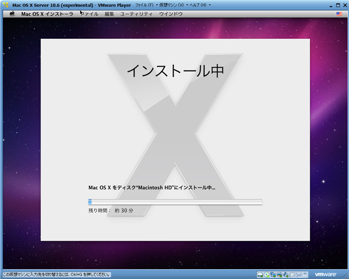 3.仮想マシン Mac OS X Server 10.6 (experimental)を起動