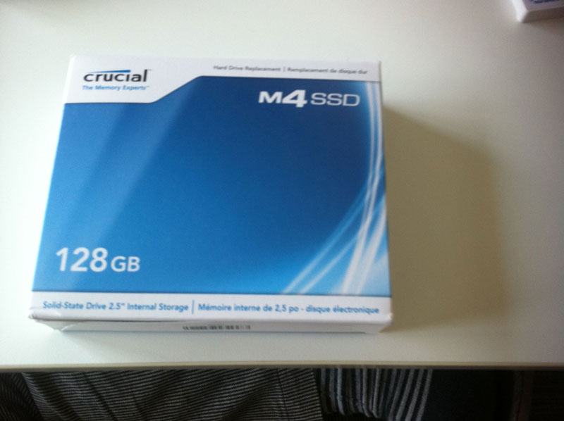 CPUのスペックは低いMacBook Air(11-inch, Late 2010,Core 2 Duo 1.6Ghz,4GBRAM)を使い出して、SSDによる起動の速さを体感してからというもの、SSDの虜です。会社で使っているデスクトップのWindowsマシンもSATA6gのSSDにしてしまったので、残るはちょっと古いMacBook Pro 13-inch, Mid 2010 Core 2 Duo 2.4Ghz,4GBRAM(古いとは言っても1年前のモデル。パソコンの進化は早い)だけ。