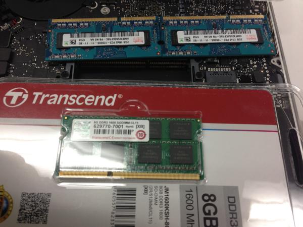 純正だと、4GB×2枚の8GBまでしか選べませんが、実は8GB×2の16GBまでいけます。