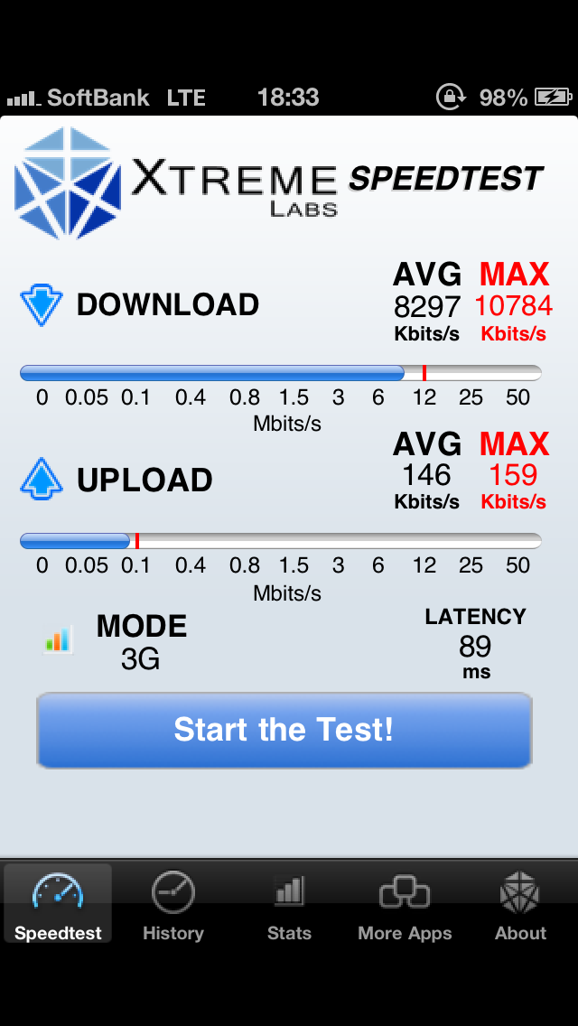 ちなみに、羽田空港では、Xiの方が、Softbank3Gより遅かった。