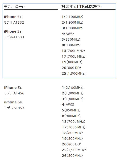 SIMロックフリーiPhone 5S(A1533)は、ドコモ・ソフトバンクともにLTEで使えるようです。