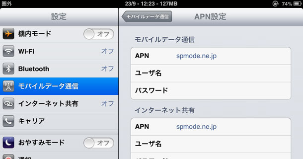 APN設定をmopera.netから、spmode.ne.jpに変更しても同じ状態。