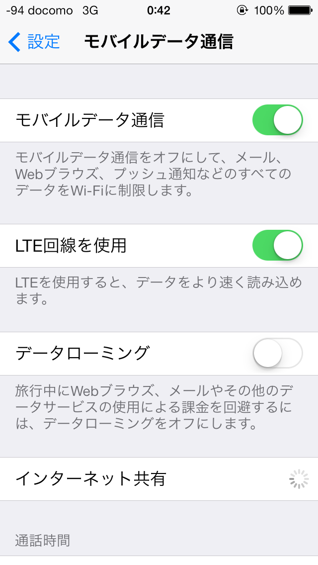 通常、iPhone 5で使用しているのですが、入れて電源をいれるだけで、APNの設定もなく、普通に4Gを掴み、無事データ通信もできました。