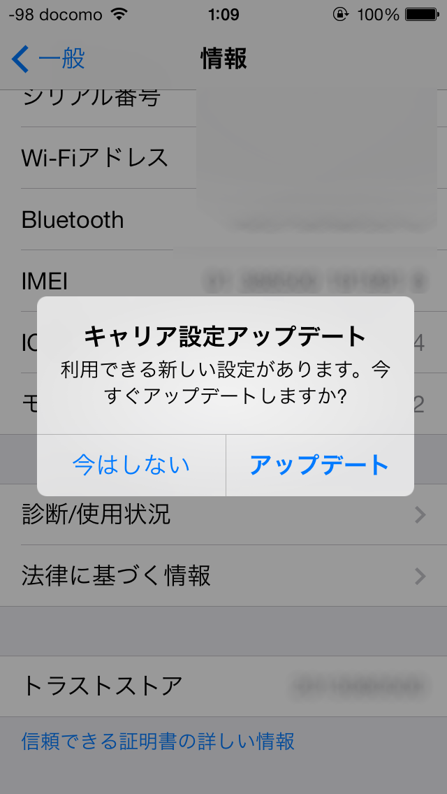キャリア設定アップデートのアラートが出たので、ドコモ15.6へアップデートしました。